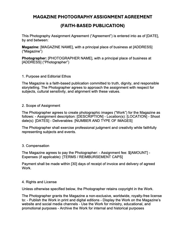 Magazine Photography Assignment Agreement